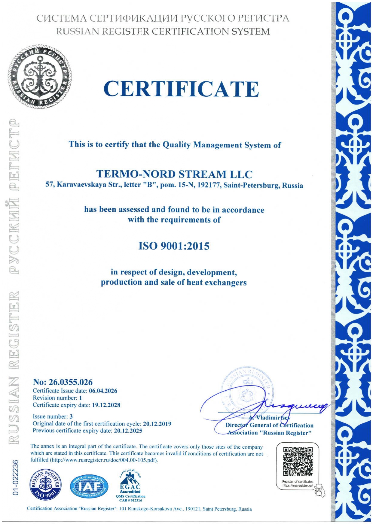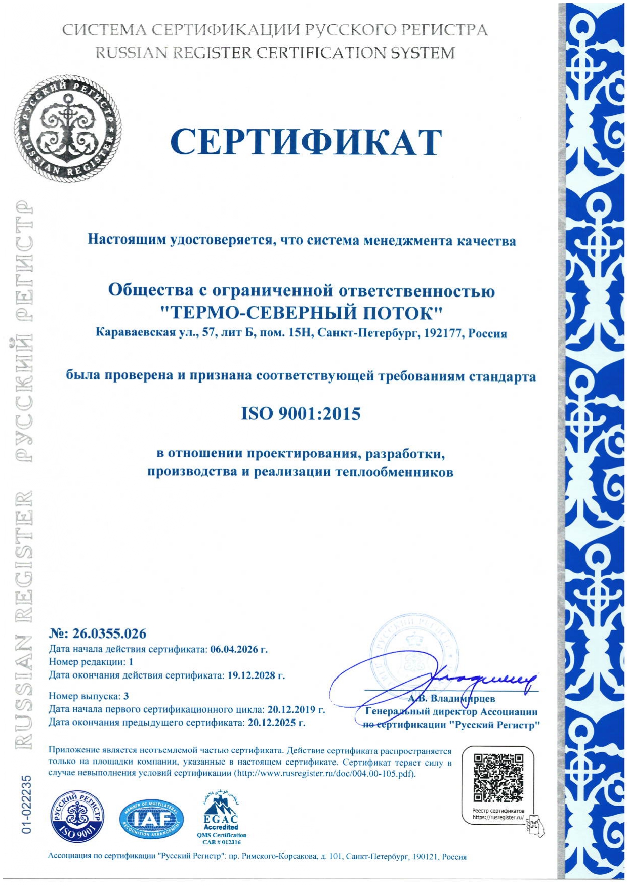 Термо-Северный поток успешно прошел аудит внутренних процедур и регламентов установленной Системы Менеджмента Качества, необходимых, для получения сертификата.